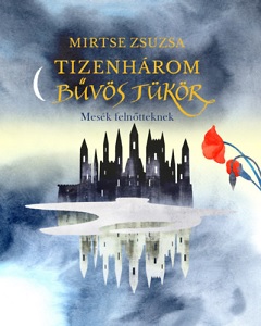 Felemás érzéssel tettem le Mirtse Zsuzsa felnőtteknek címzett mesekönyvét. A Tizenhárom bűvös tükör igényes kiállítású könyv, és igen nehéz. (Ágyban olvasásra legalábbis kevéssé alkalmas.) Oly látványos a borítója, hogy kénytelen vagyok a küllemével is foglalkozni. Mintha a grafika megelőlegezni akarná a tartalmat (vagy hangütését): a Disney-álomkastély puritánabb változatának sötét sziluettje és jeges tükröződése mellé az olvasó még fogyó holdat és feslő pipacsot is kap a pasztell háttéren.