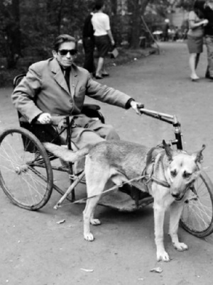 A Szondi téren lakott a szemközti házban. Gyermekkoromban az ablakból figyeltem, ahogy tolószékéhez befogott kutyájával átvág a téren a trafik felé, ahol dolgozott. Nagyon féltem tőle, mert Edit néném azt mondta, ha nem veszem be a csukamájolajat, akkor lebénulok, mint ő. Bevettem, és ámulva figyeltem őket, ahogy összeszokottan elhaladnak a házunk előtt.