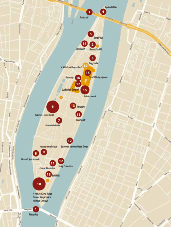 Én például nem tudtam, hogy a közkedvelt Nyulak szigete elnevezés valószínűleg egy elírás következménye. Eredetileg Insula Leprorum volt, azaz a leprások szigete, egy kódexmásolatban lett belőle Insula Leporum, vagyis a nyulaké. Árpád-kori kolostor, ispotály, sőt temető szolgálhatott a súlyos betegek elkülönítésére, sziget volta pedig megakadályozhatta, hogy lakói továbbterjesszék a kórt. Még a szentté avatott királylány legendáriumában is szerepel a leprások fürdetése, istápolása. A tatárjárás után több szerzetesrend építkezhetett, az ő kiszolgálásukra egy apró falu is létesült, ahol világiak éltek.