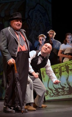 A városmajori fülledt estén a közönség egy része legyezőkkel harcolt a forróság, más része szúnyogirtókkal a rovarok ellen, miközben hosszasan, felváltva kongtak a harangok is – a színpadon mindezt látszólag nem is érzékelve, a humort „véresen komolyan véve” játszottak a színészek és zenészek. A kicsit nehezen meghatározható műfajú előadás – képregényszínház, koncertszínház? – legnagyobb érdemének azt tartom, hogy játszottak, és nem bohóckodtak a szereplők. Hogy karikíroztak, de árnyaltan formálták szerepüket, nem ripacskodták el. Nem mentek a könnyű ellenállás irányába. Már-már stílust teremtve olvasztották egységbe a zenét, dalokat, szöveget, játékot, vetített animációt. A Trip és a Városmajori Szabadtéri Színház produkciója, a Budapest Bár közreműködésével, igazán kellemes, szórakoztató, zenés színházi estét jelentett.