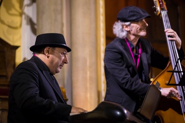 A ravaszság éppen ott van, hogy a Kamarást megtámogató zenekar fenomenális. Hegedűse Duka Laci (a nemzetközi Roby Lakatos Hegedűverseny első helyezettje!) olyan parádés improvizációs szólókat vág le, miközben a technikájából egyszerre hallatszik ki Reményi Ede, Bach és Paganini is, hogy a dzsesszhez kevésbé szokott közönség is megtapsolja – de nem marad le mögötte a fess banda sem.