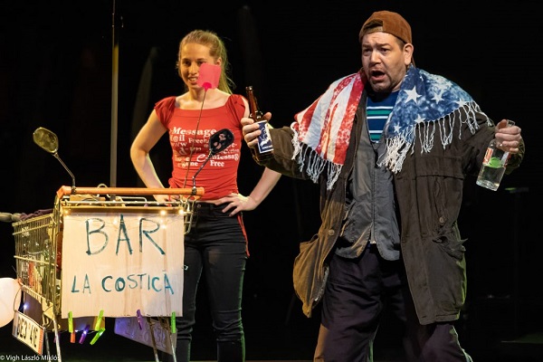 A dísztelen, később vetített háttérrel és kamerasínnel (fahrtsín) ellátott színpadra – ahol már-már kötelező módon jelennek meg szemeteskukák is (persze, tisztán és üresen) – kis motyójukkal érkeznek a játszók a nézőtérről. Először tételmondatokat sorolnak, majd mindent elkövetnek, hogy bevonjanak minket valami kétségbeejtően groteszk balkáni élet-örvénybe. Ám néhány helyzet- és szövegpoént leszámítva (amit leginkább a románul elhangzó részek tartalmaznak, vagyis csak a nyelvet bírók nyugtáznak), kevés reakció érkezik a nézőktől. Miért? A nevetséges és szánalmas helyzetek nagyon (túl) ismerősek, már alig érik el az ingerküszöböt.