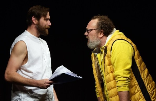 Ebből és ezzel indul a darab, mármint hogy a Margit híd futóverseny miatt lezárva, átkelni viszont kell, az egyik szétválasztja a vizet (mi az egy Mózesnek?), a másik pedig megindul, csak úgy, a víz színén (mi az egy Jézusnak?). Természetesen erről fölismerik egymást. Tekintsünk el attól az apróságtól, hogy mindketten állóvízen szerezték tapasztalataikat.