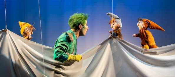 A hangszerek közvetlenül a gyermekek előtt, a színpad szélén szólalnak meg. Persze a kolibri méretű színházban máshol el sem férnének, de ez a személyesebb találkozás még hangszertanulásra is csábíthatja a mesejáték nézőit.