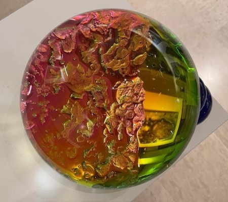 Ha jól értettem meg a kurátor magyarázatát, a művész nyersanyaga valóban sajátos volt, az Európai Nukleáris Kutatási Szervezetnek (CERN) a kozmosz keletkezéstörténete kutatásához felhasznált üvegeket használta, és azokban „kódként jelen van a világűr őslényegének felfedezésére irányuló folyamat”.