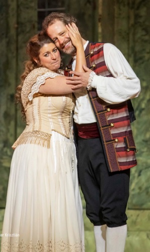 Marcellinában mindeközben persze ott ég a vágy (illetve hát ott égett). Ahogy szinte az összes szereplőben. Figaro (Cser Krisztián) vágyik Susannára (Kristóf Réka) és Susanna vágyik Figaróra, semmi kétség. De Susannára Almaviva gróf (Kovács István) is vágyik, sőt: ő úgy általában minden nőre vágyik vagy vágyott, egész pontosan épp most unta meg – énekli róla Susanna – „a környék szépeit vadászni”, ezért vetette ki rá a hálóját. A grófra a grófné (Miksch Adrienn) vágyik, az egész opera legtragikusabb pillanata az ő halált kívánó cavatinája a második felvonás elejéről, a Porgi amor, és szomorú a Dove sono is a harmadikban – szerencsére kikeveredik a mélypontokról. Annyira, hogy (ha jól láttam) a sötét parkban az őt Susannának hívő Figaróval szemben sem marad teljesen érzéketlen, legalábbis Galgóczy Judit rendezésében nem. (Galgóczy számtalan apró ötlettel teszi még szórakoztatóbbá, pergőbbé az előadást. Tudja, hogy az opera nem csupán zene: színház. Ókovács Szilveszter joggal írja munkájáról: „…rendezése maga a klasszikus színrevitel: világos, színes, követhető és szerethető.”)