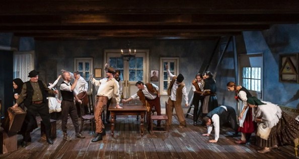 Az előadást Márkó Eszter rendezte, hibátlanul visszaadva Tamási aprólékos rendezői utasításait, és beleillesztve a fizikai színház színészmozgató elemeit – szellemesnek tűnt a kimerevített mozgásmegtörés a táncok és gesztusok áradatában. Nagyszerű a széki muzsikát felidéző zene (Lovas Gábor), tág teret kapott a koreográfus Darabos Péter, kitűnőek a színpadra felépített kocsmai táncolások (szándékosan írom így), olyan szépek és fegyelmezettek, mintha az Állami Népi Együttes stilizált táncjátékait látnánk, a spontaneitás teljes kizárásával…