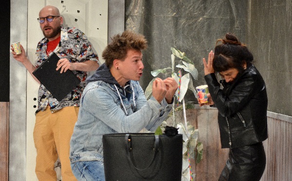 Nincs ez másképp Szivák-Tóth Viktor egyfelvonásosában sem, bár kissé bizarr, hogy a befolyásos üzletember halála előtt mindenről rendelkezve kijelölte a „búcsúbuli” helyszínét is, egy elhagyatott, romos iskola egyik termét. A közvetlen hozzátartozókon kívül csak három közeli barát, illetve üzlettárs kapott meghívót.
