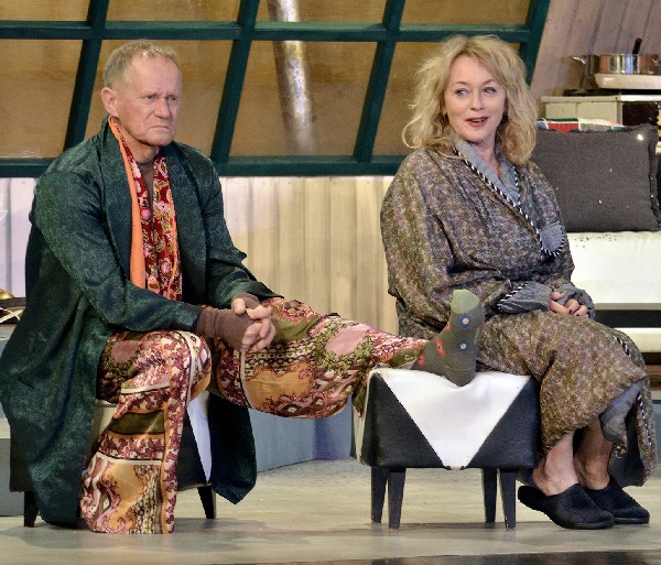 Ebbe a házasságba tenyerel bele Corie anyja, Ethel. Az a gyanúm, hogy a Kerekes Éva által hozott Ethel sokkal rémesebb lehetett az eredeti műben (vagy a való életben), itt csak fenyegető álszívélyességgel dicséri a lakást, a körülményeket, miközben mint friss anyós legszívesebben mindent leprázna. Kerekes Éva diplomatikusan pozitív hozzáállása egy sokkal elviselhetetlenebb anyukadrága képét vetíti elénk – bár lehet, hogy Kocsis Gergely rendezése szándékosan nem akart elmenni a tipikusabb (és ezért unalmasabb) figura irányába. Mindenesetre jó néhány percig Kerekes Éva válik főszereplővé, mert mindenkinek az életében lehet egy anyukadrága…