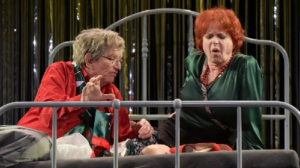 Nagy jutalomjáték ez persze Hernádi Juditnak és Kern Andrásnak. Sebestyén Aba rendezése láthatóan arra törekedett, hogy a két színészt és a mulatságos szöveget a lehető legjobban hagyja érvényesülni. Hernádi csodálatos Peg, ahogy az idősecske nő kissé gyanakodva, kissé kelletlenül próbálja használni az esélyt, amibe a lánya belekergeti. A bemutatkozó videóban locsog, értetlenkedik, füllent magáról – fintoraival, hangjával egyszerre akarja eladni magát a társkereső oldalon, meg szépíteni is a körülményeit.