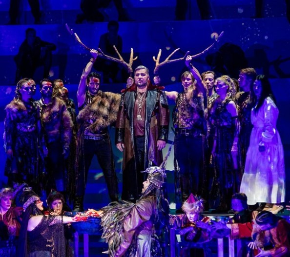Gyöngyösi Levente profi módon, sőt igen ambiciózusan írt új partitúrát, amit Kesselyák Gergely hasonló módon szólaltatott meg. A szereplőgárdából számomra elsősorban Komlósi Ildikó és Kálnay Zsófia emelkedtek ki. Komlósi akkor is fejedelmi jelenség, ha egy hang nem hagyja el a torkát. És itt elhagyja… Koppány keresztény lánya, aki reménytelenül szerelmes Istvánba, sokszoros vesztes. Réka fehér ruhájában a mindenkori áldozatokat is szimbolizálta, akik esetleg, már ha élnek, nem is feltétlenül tudják, hogy ők áldozatok. (A vesztes csata után behozzák néhány elesett hős fényképét, amiről az 56-osok jutottak az eszembe. Erről a megoldásról lemondtam volna: az 56-os felkelők és Koppány harcosai között nem vonnék párhuzamot – már ha jól asszociáltam.)