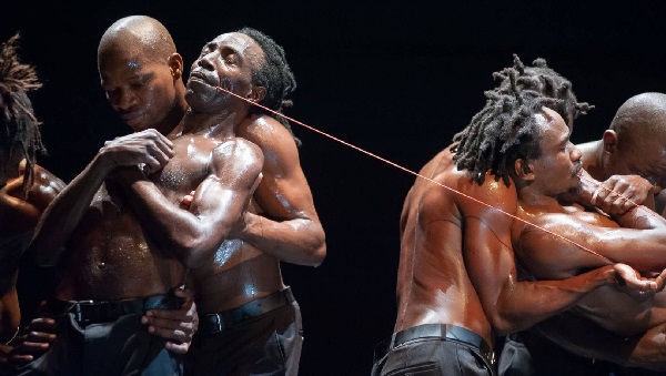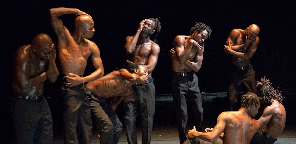 A mozgásokban a tánctörténet sok eleme felismerhető – ám nem vagyok szakember, hogy megnevezzem mindet, inkább nem próbálkozom. Amit látunk, egyszerre ősi és nagyon mai. Meghökkentő és lenyűgöző. A legkülönfélébb élőlényektől, és élettelen dolgoktól kölcsönzött mozgásrendszer, s ez többnyire elemelkedik a valóságtól. A barlang falára rajzoló ősember rituális gesztusai, a törzsi táncok idézete, a harcra készülés, az ölés mozdulatai, a kitaszítottság és összetartozás, az egymásra figyelés szertartásai – mind megjelentek benne számomra. Állati mozdulatok, sőt, ha úgy tetszik a gerinc kiegyenesedésének fejlődési folyamata, a mechanikus, bábos jellegű mozgások, szertartás és stilizáció, rítus és hétköznapiság. Mindenről beszél a táncuk. A testek verítéktől fénylenek, ők mégis látható módon mintha semmiféle fáradtságot nem ismernének, telerajzolják a színpadot mozgásukkal, könnyedén, káprázatosan. Akárha nyolc sámán táncolna.