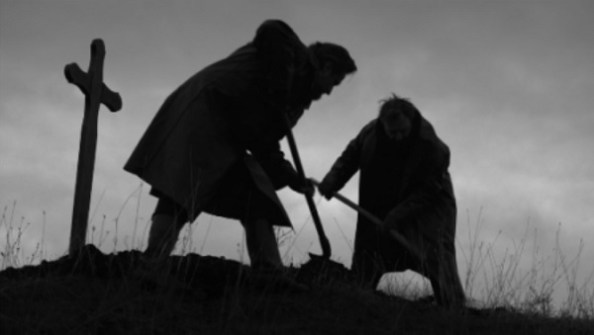A magyar rövidfilmekről néhány mondat: hetet láttunk. Hatról – udvariasságból – inkább nem írok. Viszont volt egy, ami tényleg film. Derzsi Mátyás munkája, Az út végén. Temetéssel kezdődik. Beszéd nincs, csak gesztusok. A földet kaparó ásó hangja. Együttérző kéz érintése a vállon. Aztán az út haza, ahol már csak az állatok maradtak. Pálinkásüveg, két pohár az asztalon, de a másik mögött már nem ül senki… Mindez fekete-fehérben. Az út vége? A tanya is az út végén van. A halál is. Megrendítően szép film.