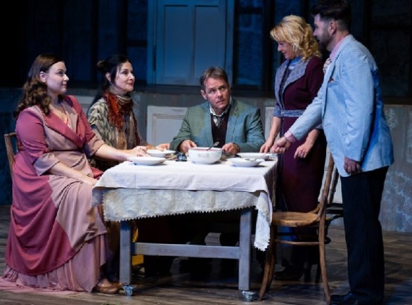 A koprodukcióban létrejött, így többféle színházi tradíciót ötvöző előadásban kevés sztereotipikus megoldást látunk; a kispolgári miliőt is inkább érezni lehet, mint látni. Sok a stilizált elem – ez néhol találatértékű, máshol picit felszisszenek (pl. a tavaszi „nagytakarítás” jelzésénél…). A jelmezek szintén adhatnak okot arra, hogy dicsérjem és bíráljam őket. Épp ilyen a zene is, viszont kommersz utalásaival talán épp azt akarja érzékeltetni, hogy a történet érvényes lehet itt és ma is. Ám ha nem ragadok le az össze nem illő részletek esetlegességénél, akkor nagyon jó előadást látok. Miért? Mert a legfontosabb mégiscsak az emberek között és az emberekben zajló folyamatok ábrázolása, és maga a történet. Ez az, ami igazán érdekel a színházban. És bátran állíthatom, hogy ez tisztán kirajzolódik, ezért érdemes megnézni az előadást.