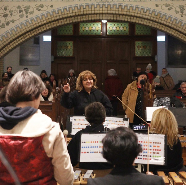 Felkutatta, áthangszerelte xilofon(ok)ra, metallofon(ok)ra, olykor furulyára… Itt kell megemlíteni, hogy a koncertet zenei asszisztensek segítik, akik hosszú pálcával mutatják a mellettük ülő fiatalnak, hogy éppen melyik hangnál tart (némelyikük egyszerre kettőt is kiszolgál). És a zene nagyon is vállalhatóan, pódiumképesen szólal meg. Olyannyira, hogy 2008-ban Fischer Iván őket választotta karácsonyi koncertjének meglepetés vendégeinek. Tessék elképzelni a Müpa meg a Zeneakadémia nézőseregét, amint felhangzik Mozart Német táncaiból a Szánkázás, és a második tételt a zenekarba beült Down-szindrómás vagy autista muzsikusok némileg elfogódottan talán, de nagyon pontosan játsszák, aztán a Fesztiválzenekarral együtt – de sok zsebkendő került elő akkor!