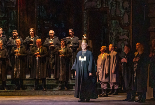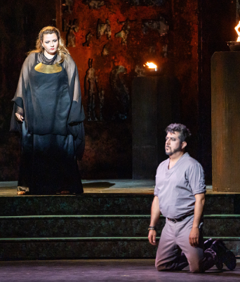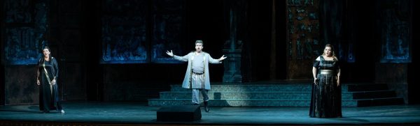 Az első megszólaló, Ramfis, a főpap (Palerdi András), ezt énekli: Halld, ősi hazánk / földjén újra vad etióp had pusztít… (Závodszky Zoltán fordítását idézem, ami megtalálható a tarjangeza.eu oldalon is). Azaz nem először, hanem újra. Ramfis Radamest (László Boldizsár) szólítja meg, aki eredetileg az őrök kapitánya, de hadvezér szeretne lenni. A negyedik felvonás elején azt tudjuk meg, hogy az egyiptomi fogságból menekülő etióp királyt megölték az üldözői. Ez nyilván nem maradhat megtorlatlanul, a harc tehát folytatódik. Amneris (Kutasi Judit/Komlósi Ildikó) utolsó szava ugyan, Radames benső nyugalmára vonatkozóan, a többször megismételt béke, de ez az, ami nincs; nincs béke sem az emberekben, sem a világban.