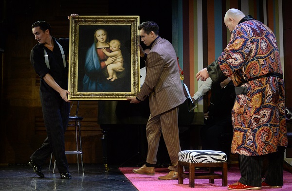 A darab és az előadás arról szól, hogy ez a gyönyörű festmény miként változtatja meg a lakók és a vendégek személyiségét. Nem kicsit és nem akárhogy. Angelina például, aki eddig is a könyveit bújta és hajlamos volt azon gondolkodni, hogy ki is ő és mit kezdjen az életével, beiratkozik egy festőiskolába, de ez csak a kezdet, Isabella pedig… De nem mondom el. Még egy bűnbánó gengszter is akad! Csak egyvalaki marad teljesen érintetlen: Sal, a gengszterfőnök. Rá nem hat az esztétikum, annyira még ez a mese sem lehet fantasztikus. Hitvallása rém egyszerű, olyan primitív, mint ő maga: „…vannak a műveltek, és vannak az eszesek. A műveltek mindenről tudnak, az eszesek meg is szerzik.” De a csapatának IQ-ja is pont ilyen… A kép kapcsán Sal csak ezt jegyzi meg: „Rocco halsütödéjében a remeterákos mozaik jobb.”