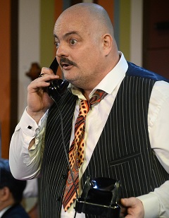 Lippy, az orgazda (Schruff Milán), aki mindenről tud, de csak a nézőnek mesél, egyébként mindenről hallgat… (A háttérben a Brooklyn Trió töredéke)