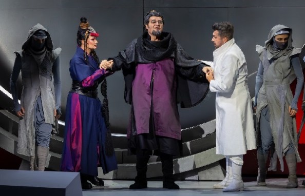 Azt kérdeztem korábban, hogy benne van-e az opera szövegében és zenéjében mindaz, amiről Barta Dóra beszél. A szövegben sok olyasmit találunk, ami egy mesében szokatlan, de azért ez mese. Például Turandot (Sümegi Eszter) kegyetlenségét, sőt frigiditását, amire magyarázatot is énekel. Valamikor régen tatárok támadtak Kínára, akik elhurcolták és meggyalázták az ősanyját. Akkor tehát a hercegnőt a bosszú motiválná? Egy évszázadokkal korábbi gyalázatért akarna elégtételt venni? Ez elég valószínűtlenül hangzik, de tényleg egy mesében vagyunk.