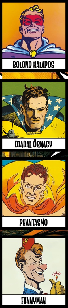 Ha ezt a szemléletmódot elfogadjuk – ami önmagában is élmény – új színeket kap e gyűjtemény, és perspektívák, érzések kavalkádját kínálja fel. Igyekszem objektív lenne, nem mentegetem, ha valami gyenge. Ami rossz, az mindenhogyan rossz. A nyitó képregény a fenti szűrőn is éppen csak átfolydogál (elfelejthető), a leírtak alapján az íróval sem lennénk haverok. Diadal Őrnagy története pedig – ha nem jönnénk rá a Major Victory címből – olyan, mintha önmagát parodizálná, csak rosszul. Hát a fene megehetné: egyszerű háborús történet, ami elé érezhetően cipőkanállal toltak be egy kis misztikumot, hogy bele lehessen szuszakolni a szuperhős zsánerbe. Viszont megértve/megélve, hogy ezek a dolgok (amik korábban piszkosul zavartak), valójában nem hibák, elkezdem élvezni a Bolond Kalapos, meg Bingó, a szuperkenguru történetét. Jól van, na, az utóbbinál az én fejem fölött is megjelent egy cakkos szélű buborék, benne »MI A…???« felirattal, de egyszerre csodáltam az agyamentségét, ugyanakkor értettem azt is, hogy a mű tisztában van saját abszurditásával, mi több, narratív elemként használja.